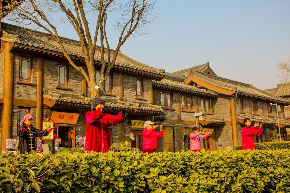 These guides emphasize slow‚ deliberate movements‚ focusing on sinking the Qi (energy) and cultivating a sense of centeredness. Breathing is coordinated with the movements‚ promoting calmness and internal focus.